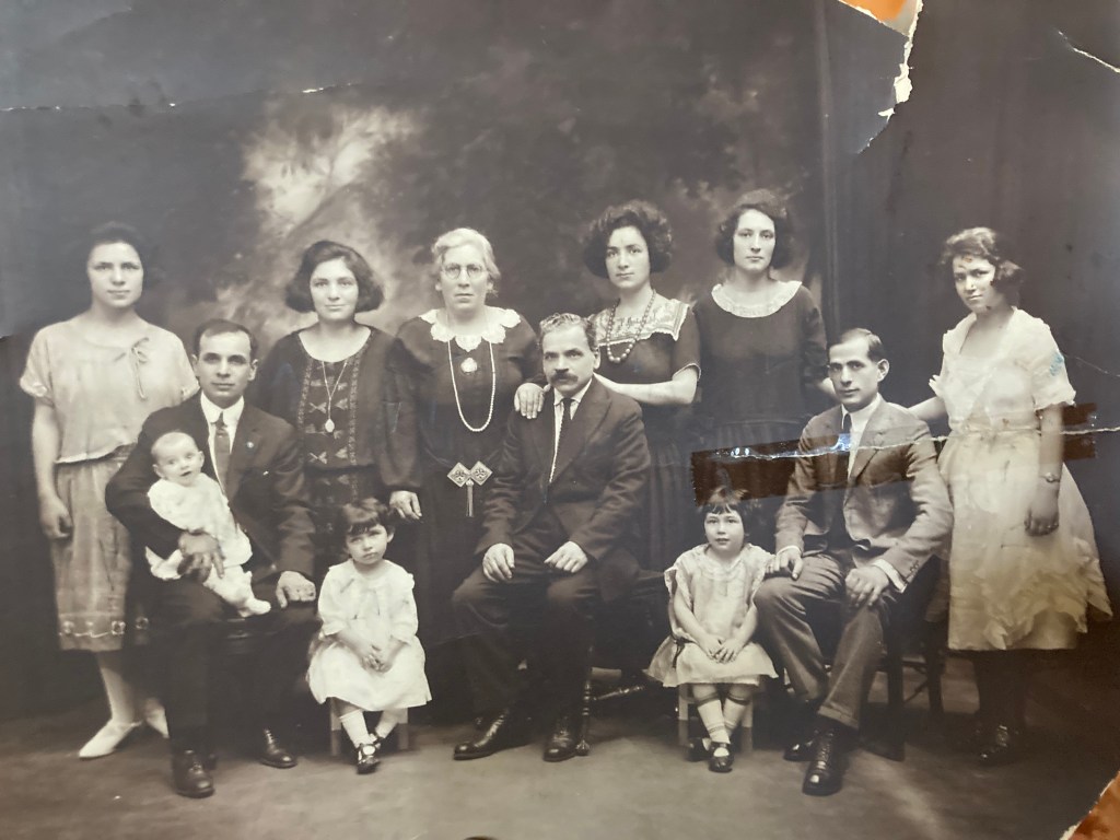 Back row: Naomi; Laike Nepove; Baba Sarah Prepstein; Rose; Blumka Shtasel Front Row: Abe Nepove holding Miriam, Fay; Zaide Morris Prepstein; Ruth, Sam Shtasel